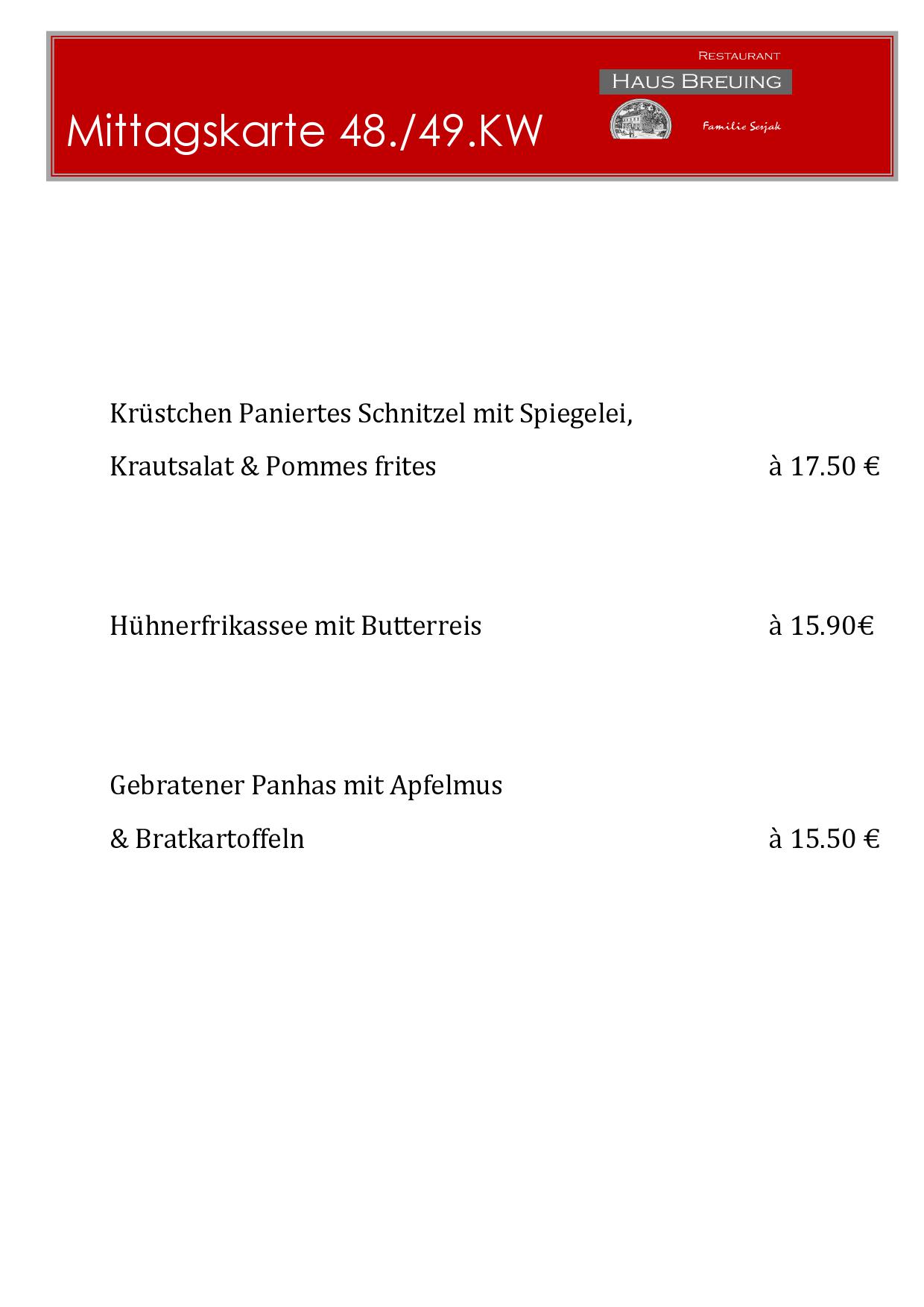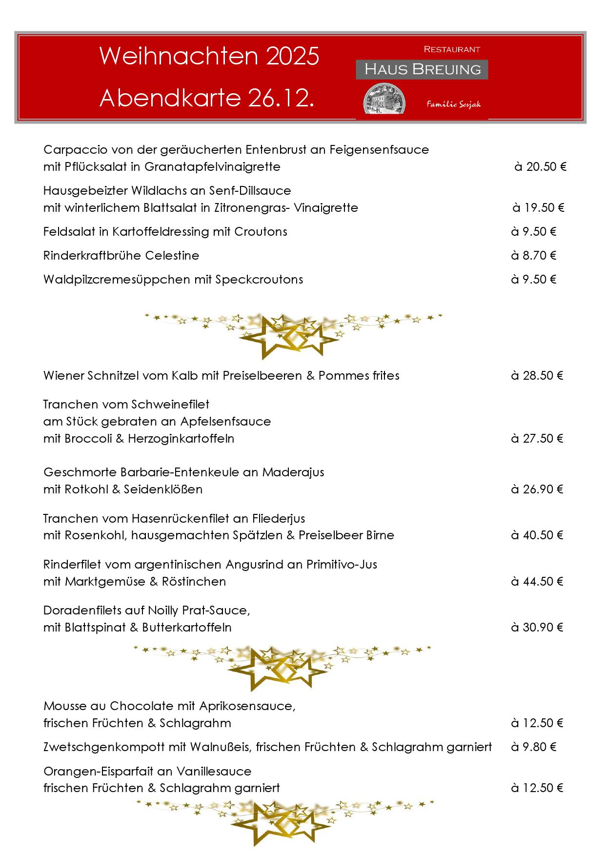 25.12. und 26.12.21 Weihnachten Mittagskarte